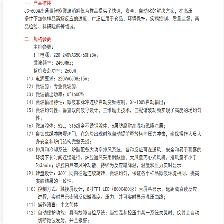 JC-600W型 微波消解仪 高密封度高通量智能实验室研究仪器